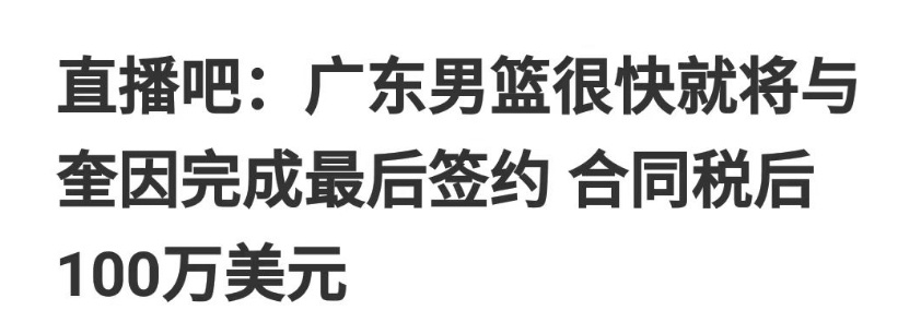 另外在第三名外援方面,广东男篮也已经确定了。据直播吧透露,广东男篮将会和前NBA后卫奎因签约,他的年薪是税后100万美元。从报道来看,广东男篮早在一年多前就对奎因很感兴趣,也和他进行过接触,只不过由于当时奎因还有NBA合同,双方并没有完成签约。在这个休赛期里,奎因成为了自由身,广东男篮对他进行了报价,随后奎因口头答应了广东男篮的邀请,国内媒体在七月份的时候报道过相关消息。